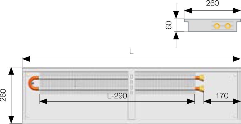 Snížení čel van konvektorů se používá tam, kde není žádoucí viditelné napojování konvektorů mezi sebou (řada konvektorů bez přerušení po obvodu místnosti, např. administrativní budovy, restaurace, hotely apod.). Při objednání krycí mřížky je nutné uvést do objednacího kódu, že se jedná o krycí mřížku, která bude použitá na konvektor se sníženým čelem. Jednotlivé vany konvektorů KORAFLEX Pool FKP nelze vzájemně napojovat. Vyrábějí se pouze v provedení P0.  Připojení a připojovací rozměry KORAFLEX FK