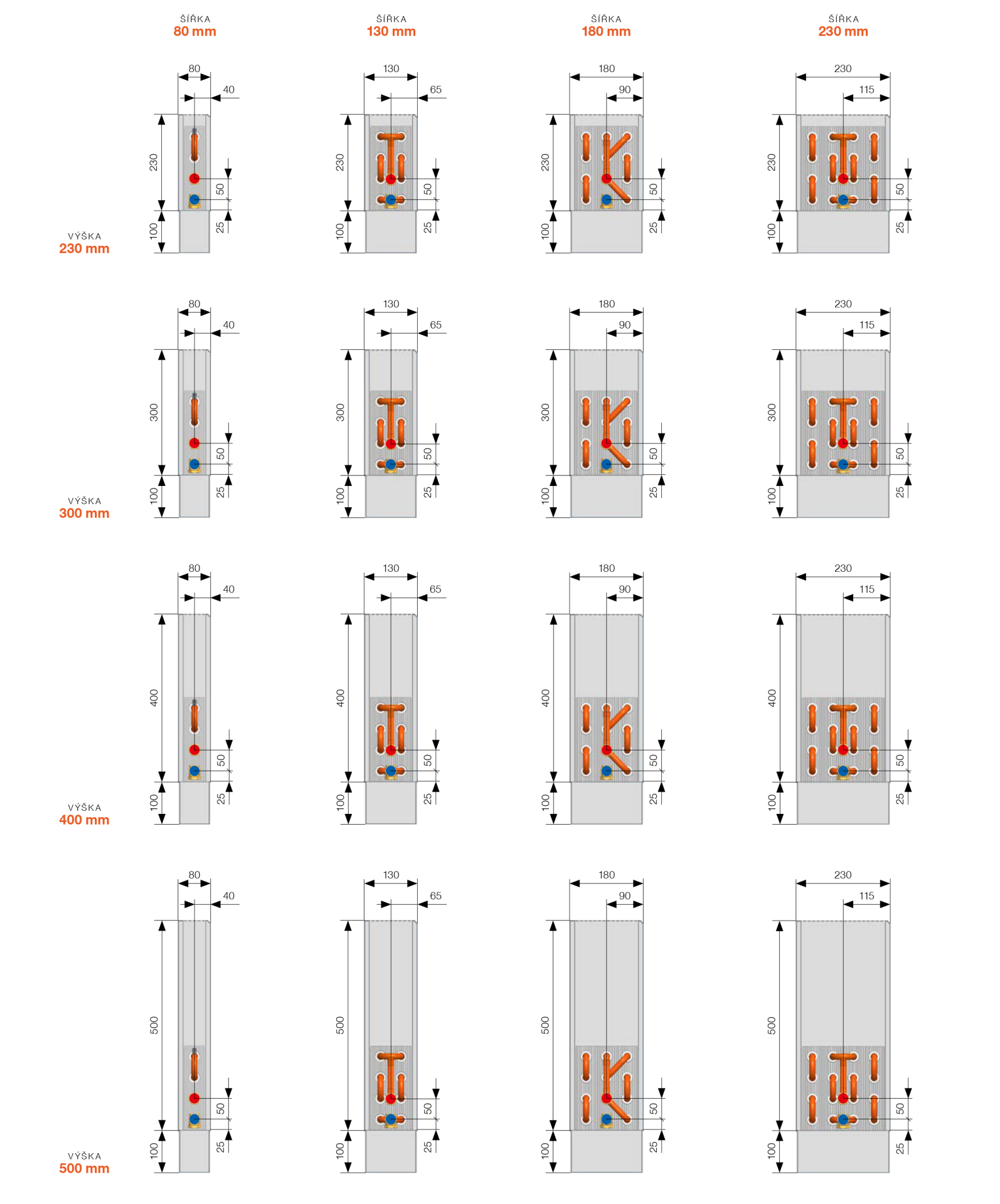 Šířka [mm] 80, 130, 180, 230 mm