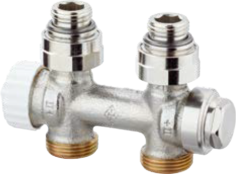 • Termoelektrický pohon 24 V DC, termostatické ventily, regulační šroubení.