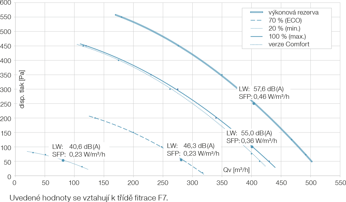 | Dispoziční tlak [Pa] | 50–450 Pa |