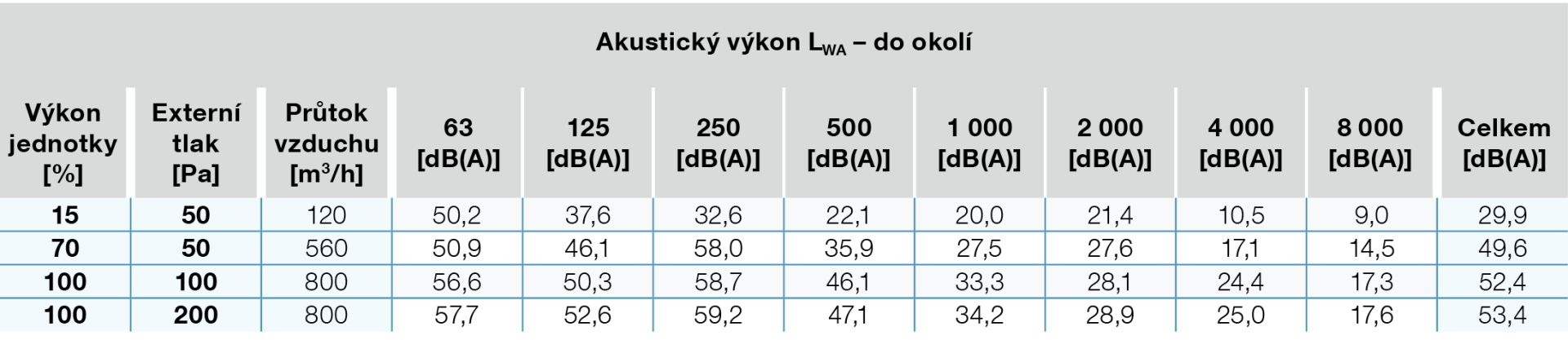 | Akustický výkon LWA [m³/h/Pa/dB] | 560 m³/h/50 Pa/49 dB |